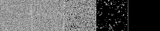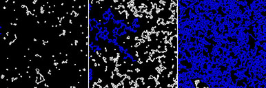 does not span the entire grid. The rightmost image is 70%. The cluster now spans the entire grid and the