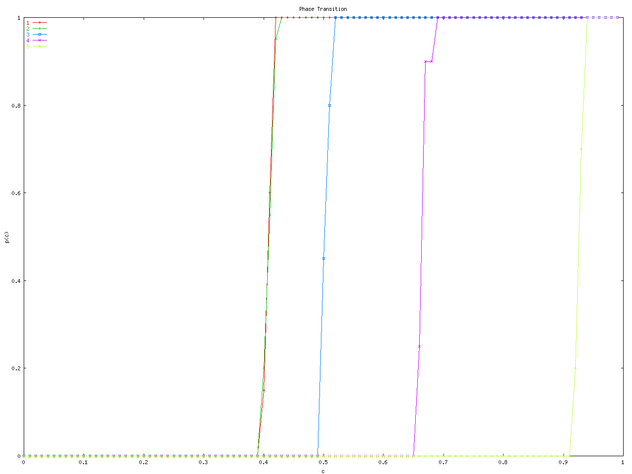 and a spanning cluster sought. p(c) is the percentage chance that for a given c a spanning cluster was found.